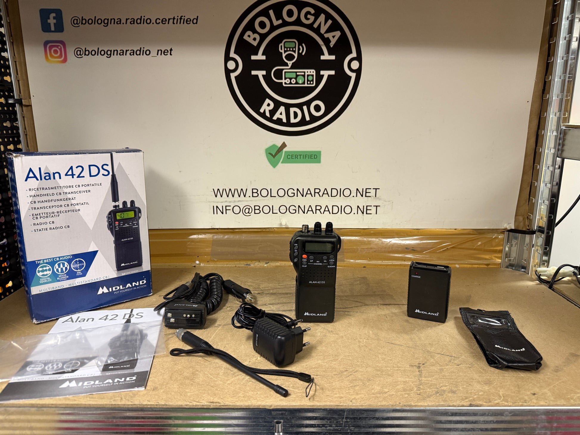 ricetrasmettitore CB portatile per eccellenza, ALAN 42 DS, rivisto nell’elettronica per rendere l’esperienza audio unica, è dotato di squelch digitale e di filtri ANL e Noise Blanker che eliminano i disturbi causati da fonti esterne o dall’automezzo. ALAN 42 DS mantiene le stesse funzioni dell’Alan 42: è un apparato multistandard che permette di selezionare qualsiasi banda europea e operare in tutti i paesi EU.