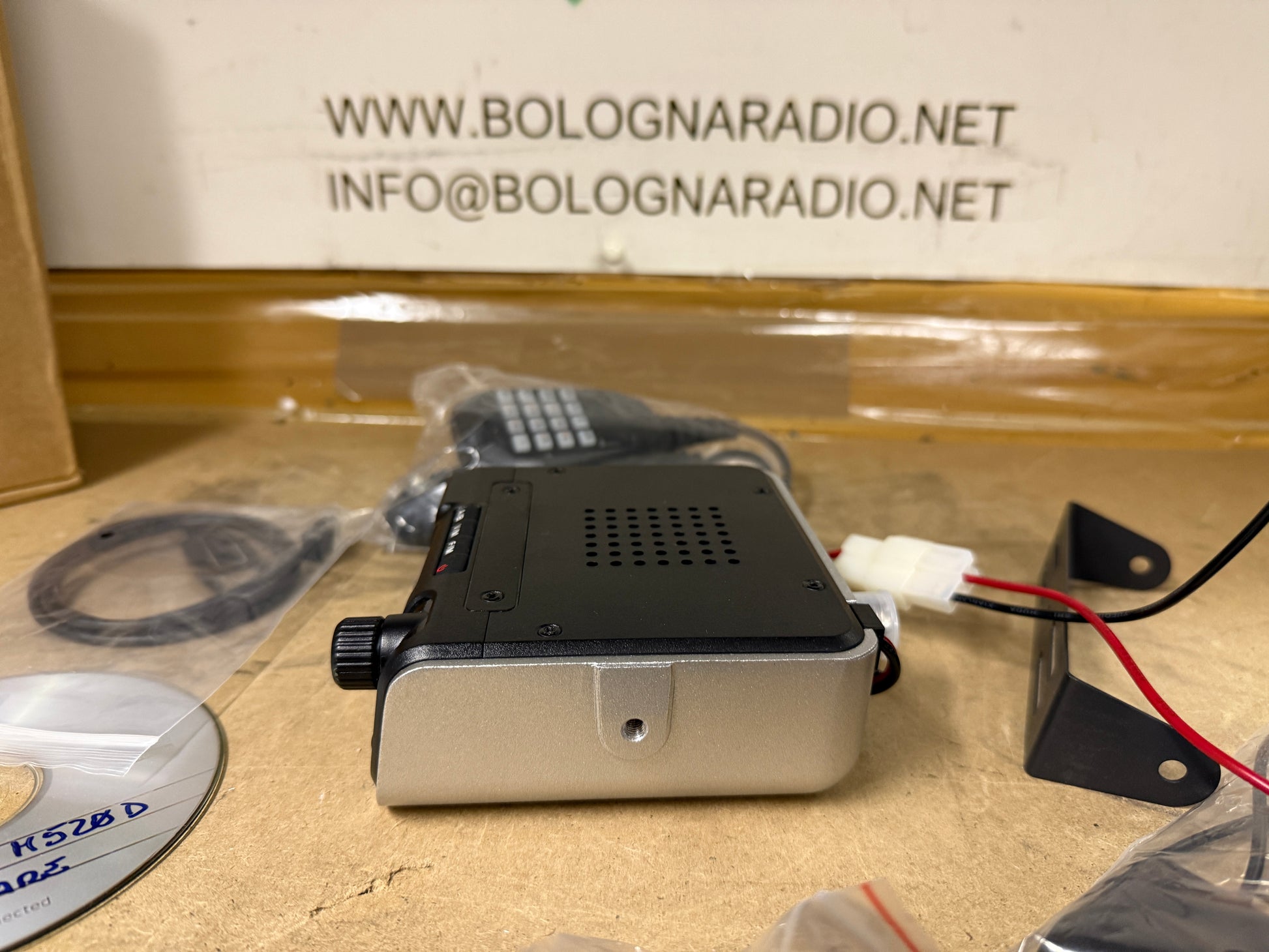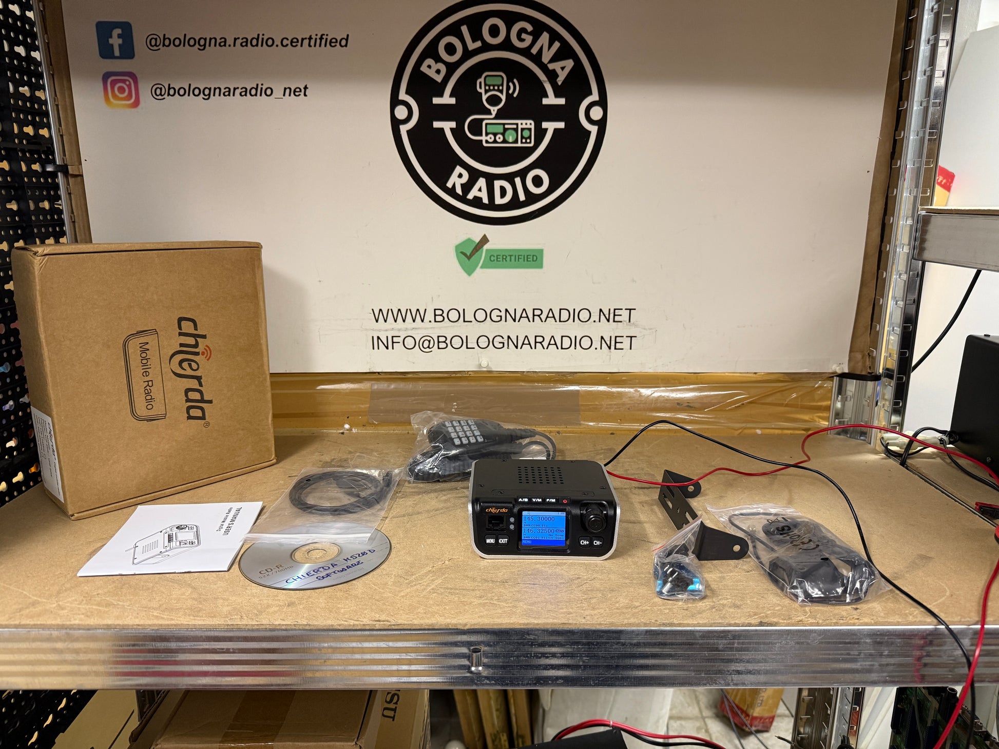 Chierda M520D Digital Mobile Radio. Si tratta di una radio mobile digitale (DMR) a doppia banda che può essere utilizzata come stazione base o in un veicolo.
