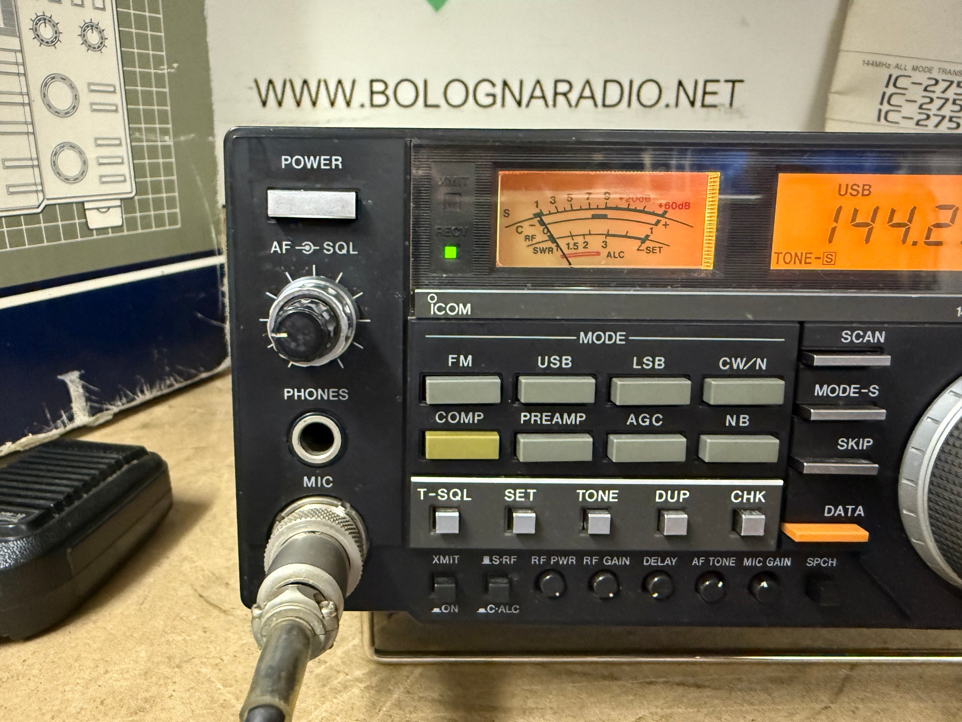 Il ricetrasmettitore Icom IC-275H da 2 metri, multimodale, è stato realizzato con tecnologie all'avanguardia. Le modalità supportate includono USB, LSB, FM e CW. La ricezione estesa è da 138 a 174 MHz. Sono disponibili 99 memorie sintonizzabili che memorizzano frequenza, modalità e altre informazioni. Sono inoltre disponibili i canali P1 e P2 per programmare un intervallo di scansione. È presente anche un canale di chiamata prioritario. La potenza di uscita è regolabile da 100 watt in su. Altre migliorie includono: processore vocale, break-in completo e semi-break-in, controllo di tono e noise blanker. Include microfono palmare HM-12, manuale e cavo di alimentazione,