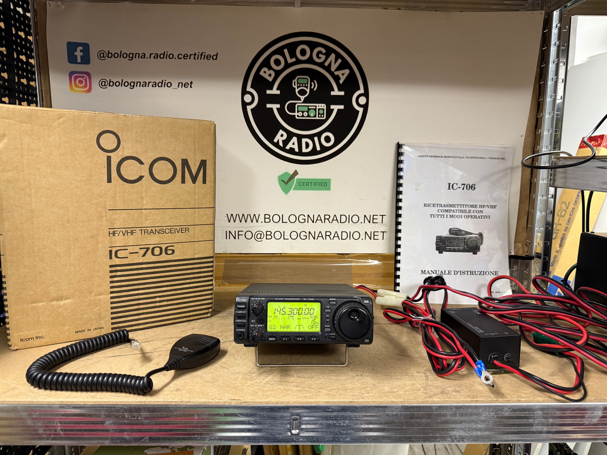 L'IC-706 rappresenta uno dei più popolari ricetrasmettitori nella storia ICOM per il settore radioamatoriale. Malgrado le dimensioni compatte questo apparato all-mode fornisce fino a 100 Watt di potenza su bande HF/50 MHz e 10 Watt sui 144 MHz. Dispone di un pannello frontale removibile, Riceve l'intero spettro tra 300 kHz e 200 MHz, IF Shift, RIT, toni CTCSS / 1750 Hz, Scansioni, Noise Blanker, Compressore microfonico, Mini Analizzatore di Spettro, Keyer elettronico per il CW.