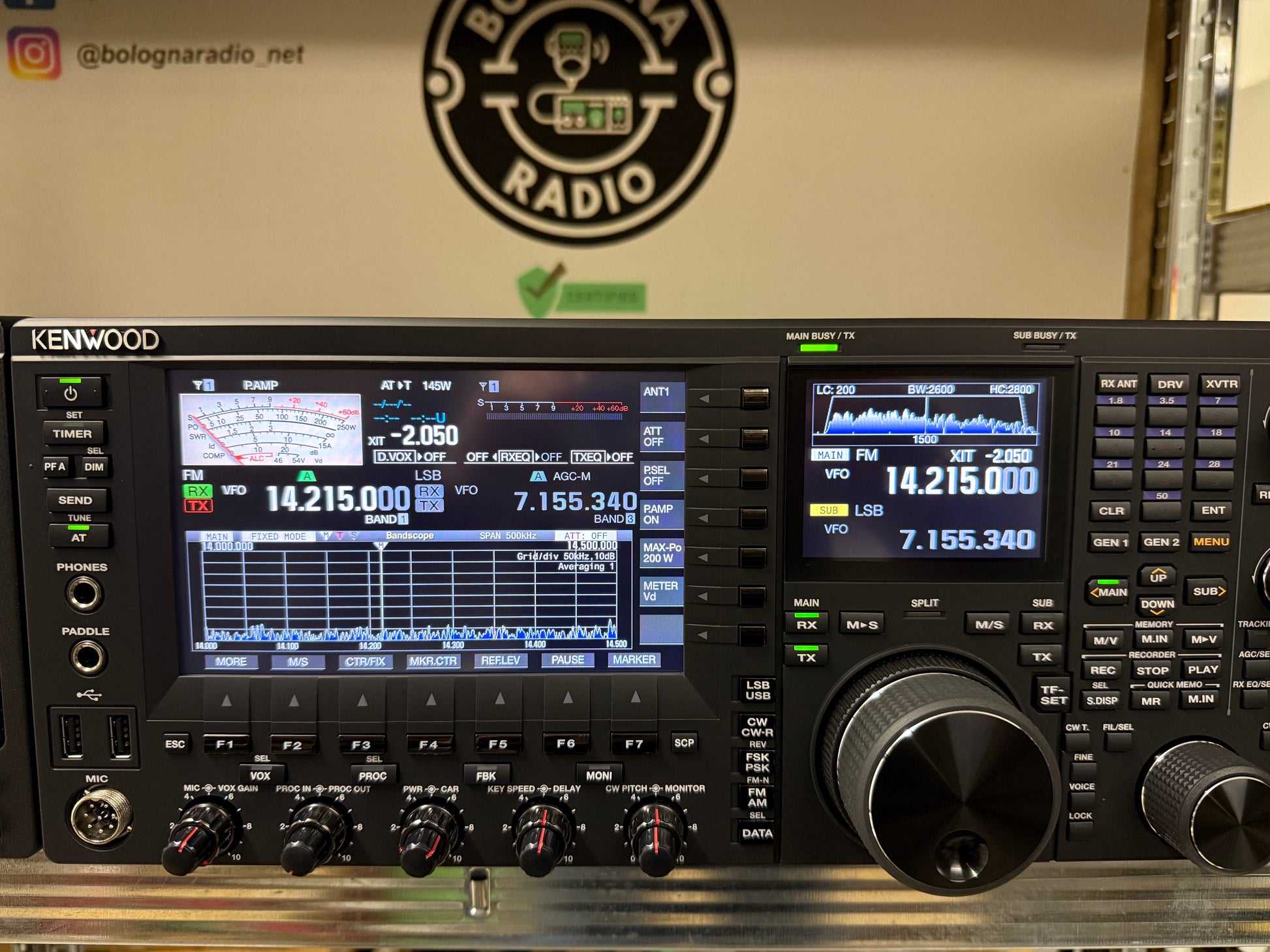 Ricetrasmettitore Kenwood di punta per le HF/50 MHz. L'apparato integra due ricevitori operabili simultaneamente su bande differenti. Il ricevitore principale dispone di filtri roofing stretti (da 270Hz a 15kHz) ed una configurazione down-conversion, +40 dBm di IP3, preselettore per le bande radioamatoriali che varia in sintonia in tandem con la frequenza di ricezione, TCXO da 0.1ppm, encoder e decoder per RTTY e PSK31/63. Potenza di trasmissione da 5 a 200 Watt con amplificatore finale equipaggiato con MOSFET VRF150 alimentati a 50 Volt, accordatore automatico d'antenna ad intervento rapido, uscita drive per operare anche in banda 137 kHz. Tre processori DSP da 32-bit in aritmetica floating-point della Analog Devices. Inoltre grazie al doppio display TFT multi funzione ed al studiato pannello frontale viene raggiunta una confortevole visibilità e operatività dei comandi.