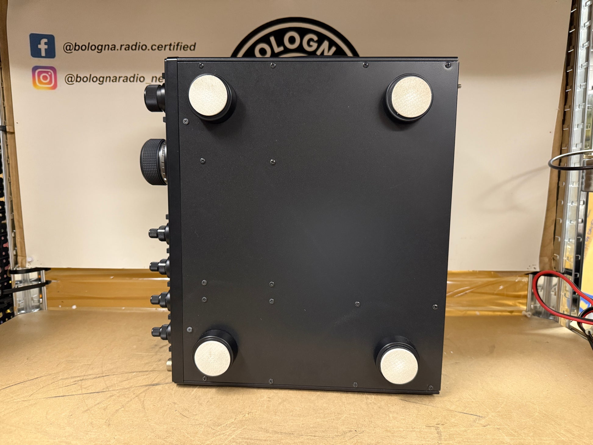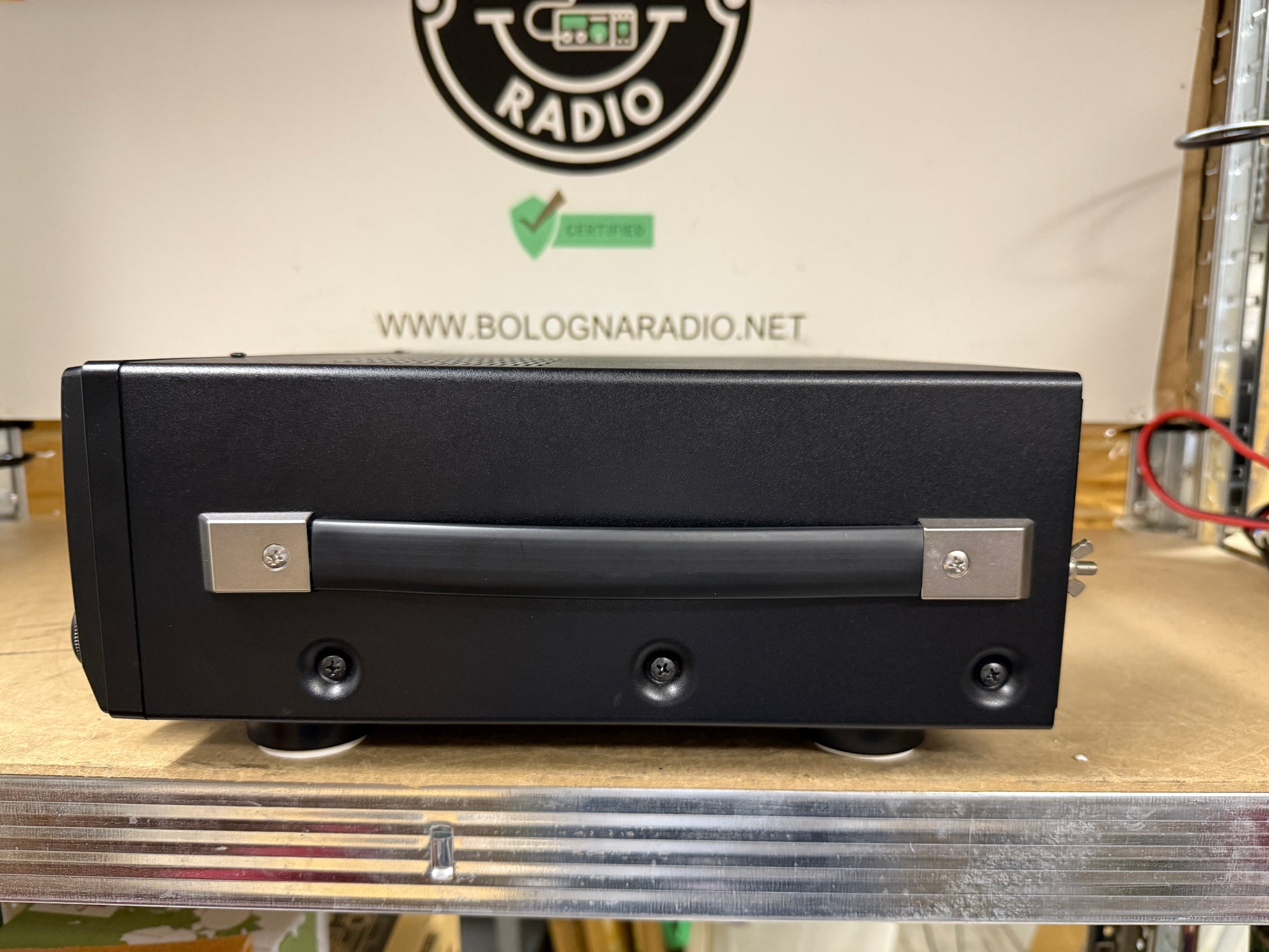 L'amplificatore di potenza, che utilizza due MOSFET tipo RD100HHF1 in configurazione push-pull, raggiunge il livello di 100 Watt garantendo una trasmissione di alta qualità con bassa distorsione e ridotte spurie. La sua costruzione, combinata con lo chassis in pressofusione, dissipa il calore generato in modo assai efficace. L'alluminio usato per la struttura presenta un'alta conducibilità termica, dissipando il calore attraverso l'intero chassis viene evitato l'incremento di temperatura durante le lunghe fasi di trasmissione a tutto vantaggio dell'affidabilità.